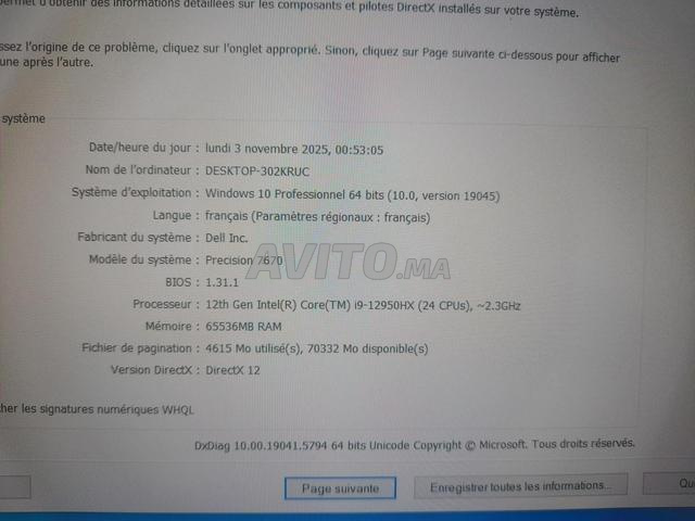 Dell precision 7670 i9 12950HX 24CPUS ram 64go ddr5 disque dur 1to ssd doubles graphiques Intel et nvidia RTX A4500 16GO dédié batterie excellente chargeur original écran 16 full HD clavier retro éclairé prix 14800dh