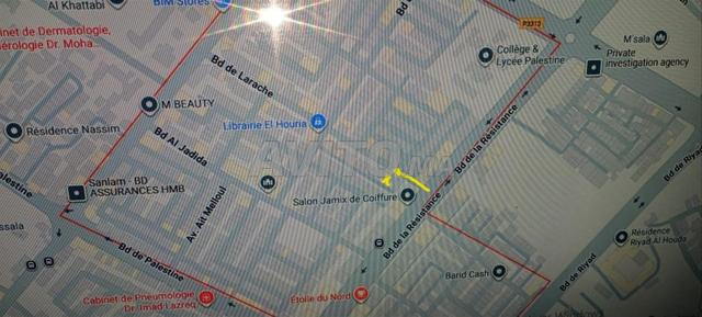 A louer local commercial d'une superficie de 25 mètres carrés 5/5 sur l'avenue Larache, quartier Hay Al Horriya et à 25 mètres de l'avenue de la Résistance, spécialement pour l'ouverture d'une agence de transfert de fonds Wafa Cash.
