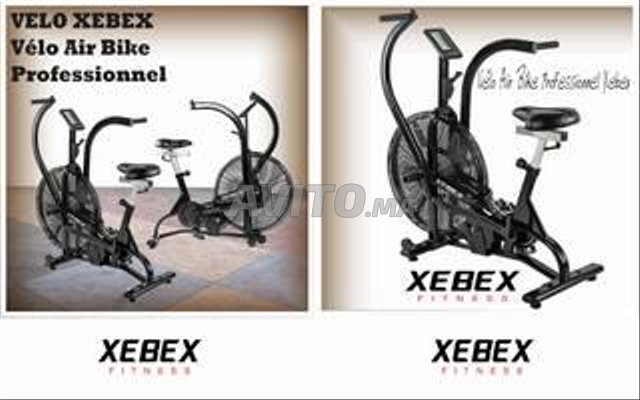 Vélo aérien XEBEX Air bike XBX-101 – vélo d'entraînement avec système aérien de contrôle de charge. La construction spéciale permet un entraînement efficace des parties musculaires inférieures et supérieures. Le vélo possède un système magnétique supplémentaire de changements de résistance.