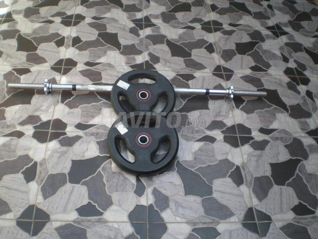 - Deux disques de 10 kilos plus barre.