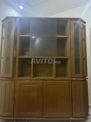 Je mets en vente un buffet vaisselier en bois, solide avec plusieurs espaces de rangement.