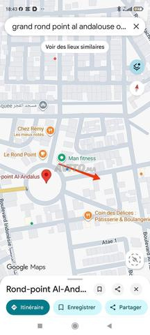 je vends mon terrain qui se trouve à 20 mètres du grand rond-point de quartier Al Andalous c'est un R plus 3 avec possibilité de sous-sol la surface totale c'est 453 mètres carrés possibilités de faire 18 logements de deux chambres salon et soit un grand rez-de-chaussée commercial ou 6 magasins sur une façade et deux magasins sur la deuxième façade il s'agit de deux lots de terrains collés un avec une seule façade qui fait 242 mètres carrés et un autre qui fait 211 mètres carrés avec 2 façades je vends ses deux terrains à contre cœur car je suis sur d'autres projets de construction NB les terrains je les vends mais je ne suis pas dans le besoin absolu donc s'ils ne se vendent pas je vais les construire dans un second temps.