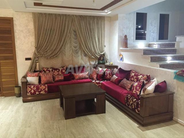 Nous mettons en vente un petit salon marocain forme L très bon état qui contient 2 seddari avec matelas et housse matelas qualité premium un petit coin et rideau.