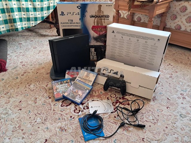 Je met en ventes une Ps4 acheté neuve de france 1To de disque dure trésor bon état vendue avec tous ces accessoires y compris avec 11 jeux