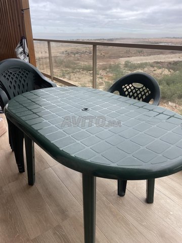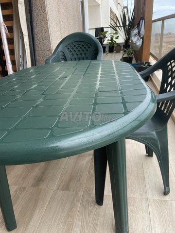 Grande Table en plastique solide avec 5 chaises sans dégât et pas cassé, jolie couleur