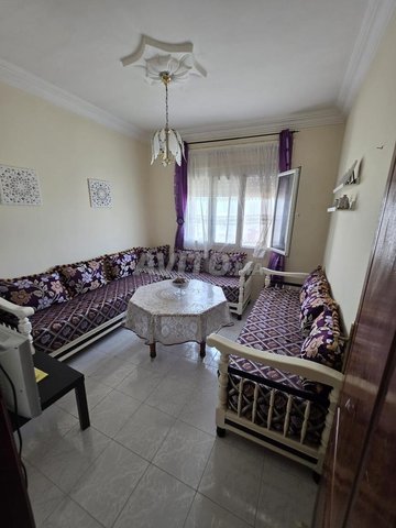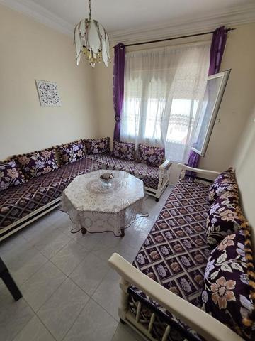 Salon marocain avec table, 3 safari de 2 M chacun ,table 1,10 M de diamètre. Le salon est encore en bonne état mais je vous conseille de changer les matelas.