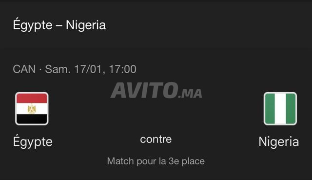 Je mets en vente 2 tickets Cat 3 cote à cote Match de petite finale Nigeria vs Égypte à bon prix