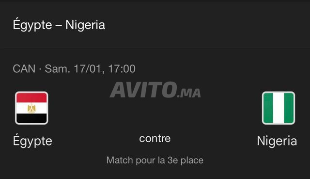 - Ticket match petite finale egypte vs nigeria