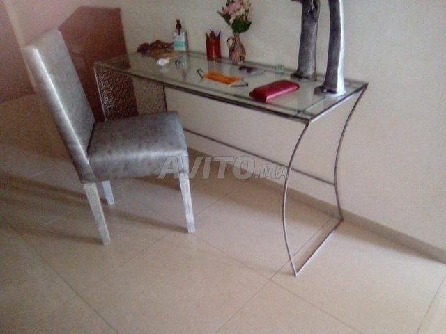 Console fer forgé gris plus vitre longueur 140 cm largeur 45 cm hauteur 75 cm