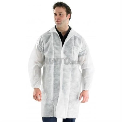 Blouse jetable blanche de haute qualité, fabriquée en tissu non tissé (Non Woven), idéale pour l’hygiène et la protection au travail.