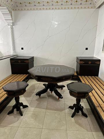 صالون مغربي من الخشب لتر للبيع مساحة 440سنتمتر في الطول و340 سنتمتر في العرض مكون من سدادر الخشب لتر منقوشين باليد وطابلة ثمانية منقوشة مغطات بالزجاج و2 سندريات و2 كوانات و2 تكيات منقوشين أما البنج فهو من نوع الممتاز البصمة 5 نجوم مغلفين ب لبص الأزرق 3سنتمتر ثوب مدكال 1سنتمتر من النوع الممتاز العبار فيهم 70 في العرض و30 في العلو لي عندو هذا العبار في الصالة مرحبا به الثمن جد مناسب 12000درهم ولا في الخيال غادي ينقص عليك النص او أكثر في ثمن الجديد عند النجار