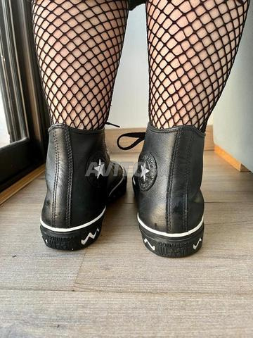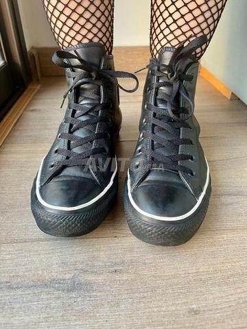 À vendre : une superbe paire de Converse montantes en cuir noir, alliant le style iconique de la marque à une touche chic et raffinée. chic et intemporel ,