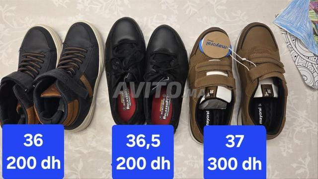 Les tailles de chacune des chaussures sont inscrites sur la photo. Les chaussures peuvent être vendu par lot ou par pair.