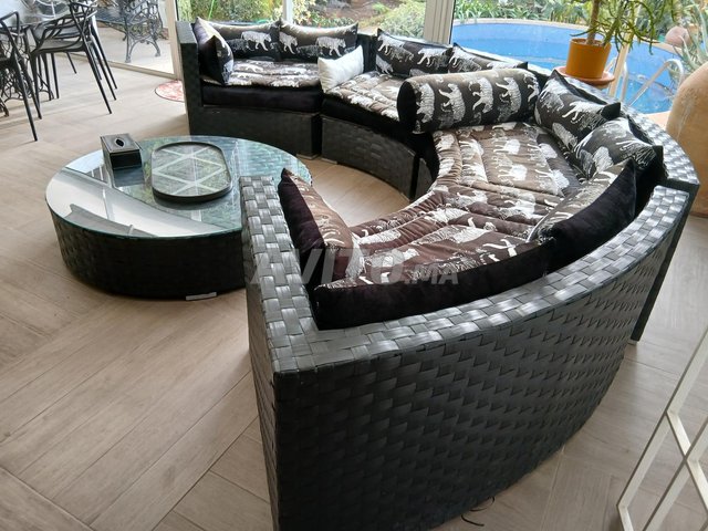 Vends un salon de jardin arrondi noir et sa table.