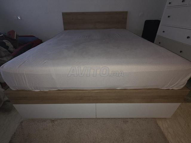 Lit L 180/2m deux places avec rangement et de chevet en très bon état. et avec matelas .
