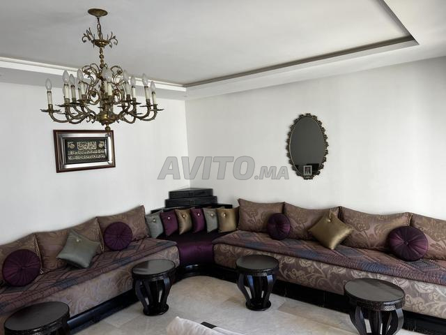 Je mets en vente un salon marocain avec matelas Simmons qui mesure 3,60m sur 4,20m avec rideau et 4 tables de cendrier