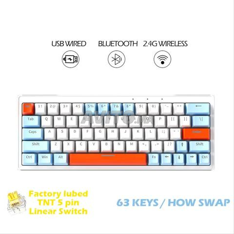Mechanical keyboard ZA63 yellow switch et extra switch and keycaps NEW ZIFRIEND ZA63 clavier mécanique 63 touches échangeable à chaud filaire rvb rouge bleu commutateur jeu Anti-image fantôme 60% clavier blanc Keycap