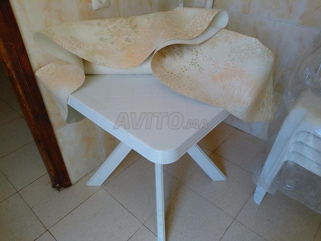 Table blanche en plastique avec 4 chaises neuves