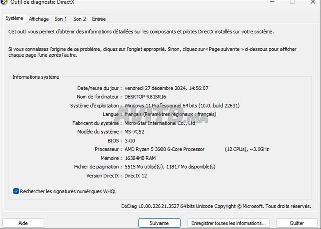 Mémoire RAM: 16Go DDR4.