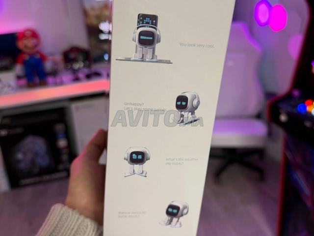 Emo Go Home AI Desk Robot Companion - ChatGPT Enabled with Voice Commands & Dance Feature, Robot de compagnie interactif avec personnalité, Livré avec une station d'accueil de chargement Construit avec de multiples capteurs et des technologies de pointe, Emo est un robot de bureau IA cool avec un personnage qui peut explorer le monde et réagir à vous avec 1000 visages et mouvements.
