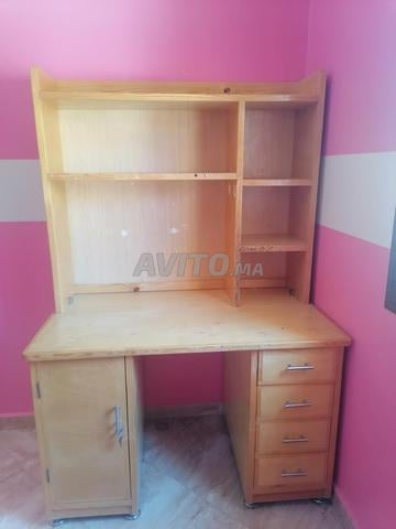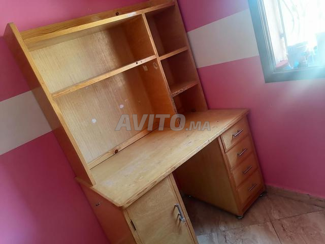 Je mets en vente un bureau en bois fait à la main de haute qualité, équipé d'une bibliothèque pour ranger les livres.
