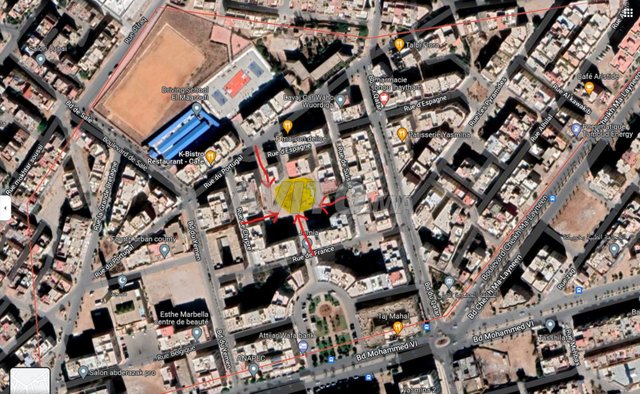 Situé dans le quartier prisé de Yasmina 1, à l’angle de la Rue de Paris, ce terrain de 1 352 m² bénéficie d’un emplacement stratégique et rare, offrant quatre accès directs sur des rues principales. Sa façade arrondie, unique et élégante, lui confère une visibilité maximale et une valeur architecturale idéale pour tout projet ambitieux.