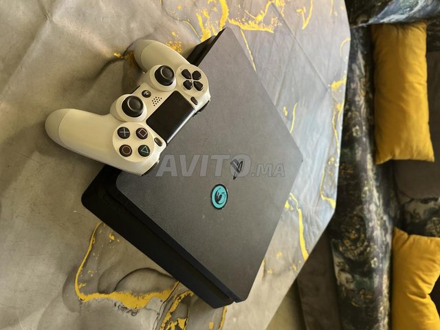 PS4 Slim 1To noire en très bon état et manette blanche originale, fonctionne parfaitement.