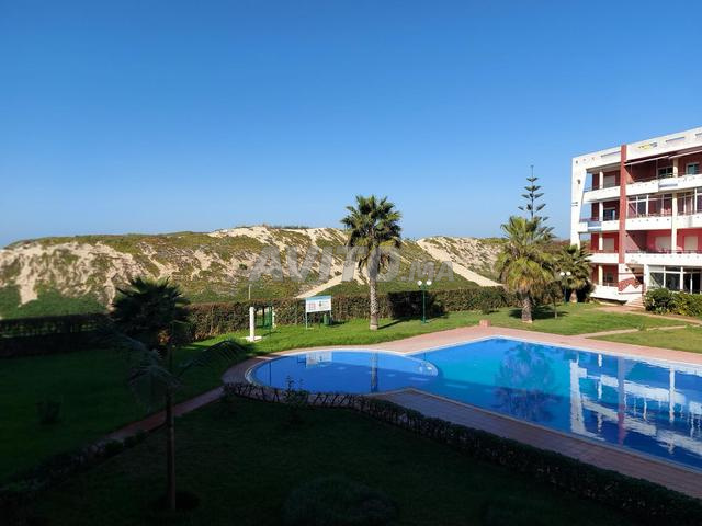 Appartement haut standing meublé de 100 m2, cuisine équipée, 2 chambres avec grand lit. 2 salles de bain. Internet fibre inwi, Netflix, IPTV, chaînes payantes gratuites.. sécurité 24/24h, piscine.. plage à 200m..