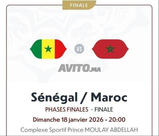 Je mets en vente deux billets pour la finale du coup d'Afrique 2025 Maroc vs Sénégal.
