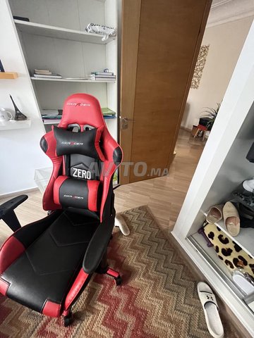Chaise Gamer, rouge, bon état avec coussin en plus et avec des roues