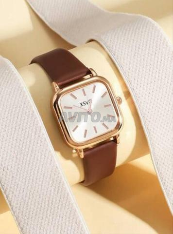 ✨ Design : Boîtier carré couleur or rose avec un cadran blanc simple et élégant
