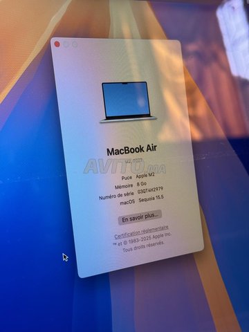 Macbook Air M2 (8/256GB) Batteries 94%🔋 Cycle 167 M3ah cable original j'accepte les reprise