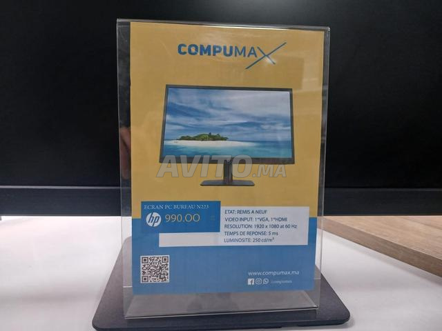 ***************************Le HP N223 21.5-inch Full HD LED Monitor offre une résolution de 1920 x 1080, un temps de réponse rapide de 5 ms et une connectivité polyvalente (HDMI, VGA), idéal pour le travail et les loisirs. Ergonomique et compatible VESA, il combine performance, design épuré et adaptabilité.