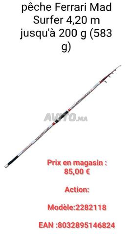 Très bonne canne télescopique 4.20 poid 540 g,puissance 80-200 g plus moulinet 6000 8 roulements double frein 15 kgs.rempli de tresse 300 Mt diamètre 0,20 et arraché de 30 Mt en 0,40 .