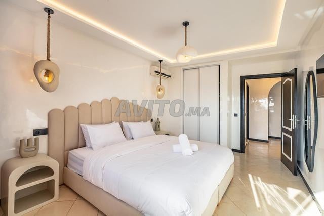 Appartement de luxe 2 chambres situé au cœur du quartier prisé de Majorelle, à quelques pas de jardin Majorelle et des meilleures adresses du centre-ville. Entièrement équipé, avec mobilier neuf et raffiné, il offre un cadre élégant et chaleureux. Calme absolu, literie haut de gamme, cuisine moderne, climatisation et finitions soignées pour un confort optimal. Idéal pour un séjour alliant sérénité, style et proximité des incontournables de Marrakech.