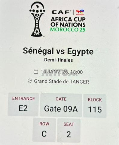 Vente billet en cat 1 demi finale egypt senegal