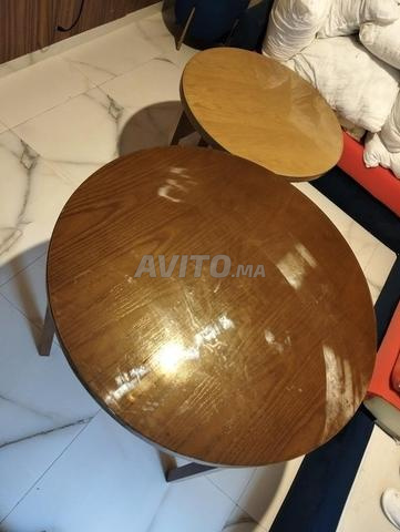 Très bon état, design élégant effet bois avec plateau brillant.