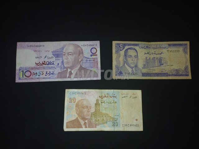 Anciens billets de banque en bon état de l'époque Hassan II