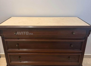 Commode vintage en bois massif et vrai marbre
