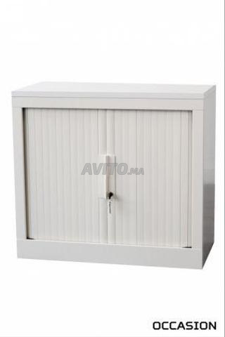 Armoire basse métallique coulisse rideau blanche