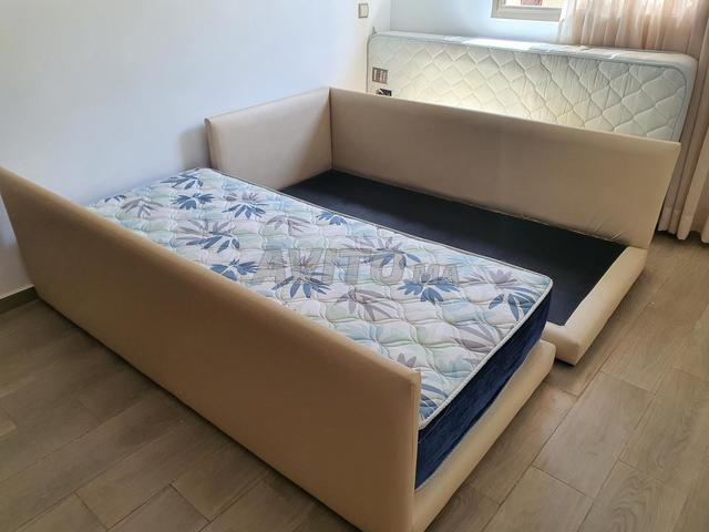 Je vends deux lits séparés couleur beige, en très bon état. Design élégant et moderne avec une structure solide et durable