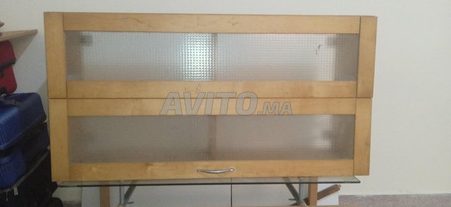 Meuble haut Ikea Varde, deux portes vitrées articulées, largeur 120 cm, hauteur 60 cm, prof. 37,5 cm. Vendu monté.