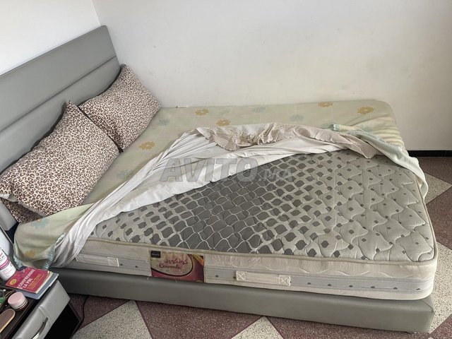 - lit avec matelats et deux table de nuit
