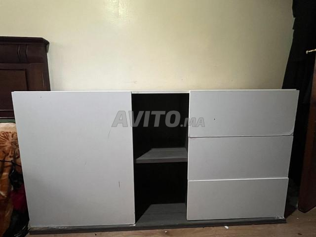 MEBLE TV AVEC RENGMENT BLANC EN BON ETET AVEC ETADERE