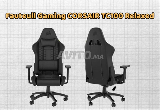 Ici on vous propose le CORSAIR TC100 Relaxed, fauteuil gaming ergonomique en similicuir noir, parfait pour des sessions longues sans fatigue 💺⚡