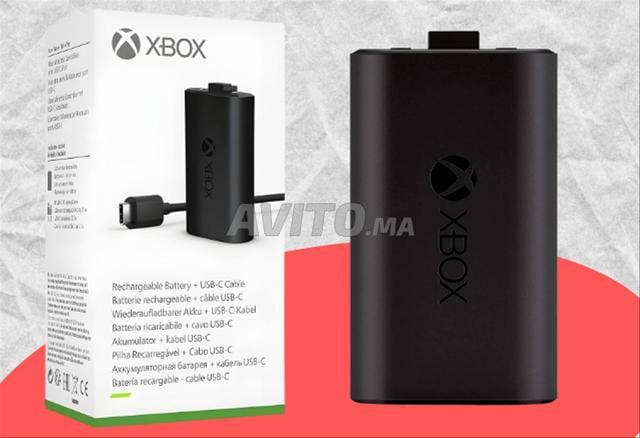 Kit Play & Charge pour manettes Xbox nouvelle génération. Permet de recharger la manette tout en jouant grâce à une batterie rechargeable et un câble USB-C inclus.
