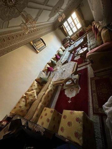 Je met en vente un salon marocain en très bon état comme neuf , composé de : salon complet( les mesures affichés dans un schéma)& 2 grandes tables avec 4 petites tables coins , 2 tabourets même couleurs d tlamet, un coin 70/70 qui fait le coin , des housses 2 couleurs rouge et vert kaki,pistache , khdadi différents couleurs , 2 grands tapis , 2 plafonniers grands en cristal & 4 plafonniers coins , 2 rideaux ( un pour l’entrée du salon , un pour la fenêtre) .