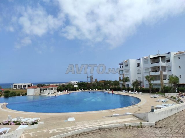 Apparemment une choucher à choucher, un salon, daux salle de bain, une cuisine pein équipée, une terrasse Vue Sur Piscine.