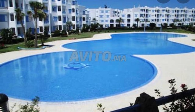 Résidence privé familiale près de la plage avec des espaces verts , près de la palge avec 2 chambres 1salon , 1 sdb , 1 balcon. 3ème étage avec une belle vue sur Mer et montagne. Grande piscine disponible inclus, des jeux pour les enfants , un parking gratuit sous sol , á 5min plage Marina Smir , des cafés et restaurant autour de la résidence.