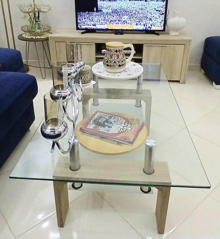 Salam, je mets en vente mon meuble TV en bonne état avec pti defaut (voir photo) dim. 140x40 et table basse en excellente état dim. 110x60 (avec verre épais pas comme celles vendues en grandes surfaces). Très bon prix legerement negociable.